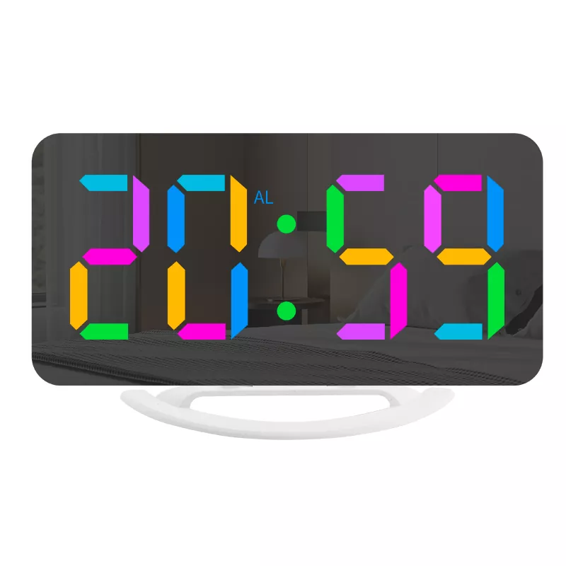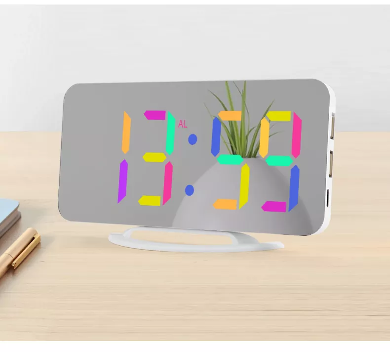 1. एलईडी आरजीबी कलर डिस्प्ले डेस्क मिरर अलार्म घड़ी, 12/24 घंटे
